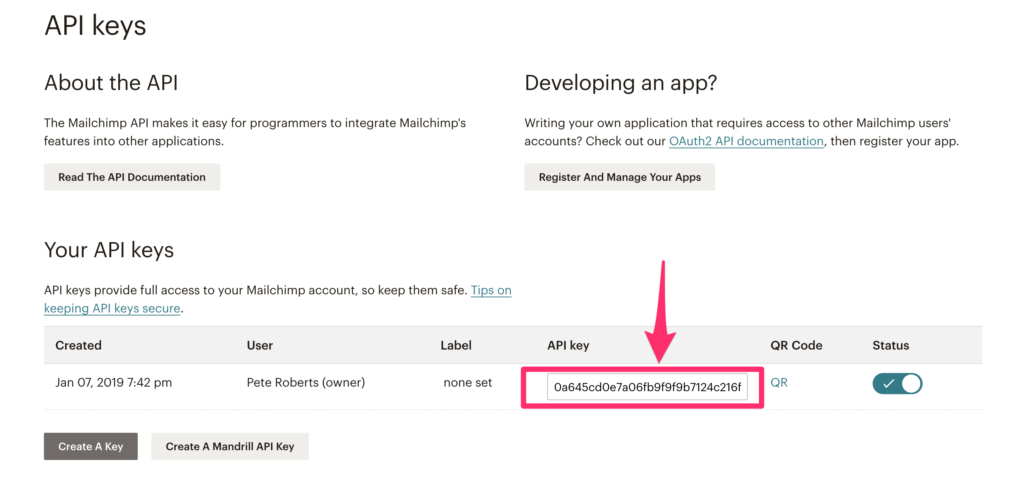Next, copy the api key – we’ll need this later.