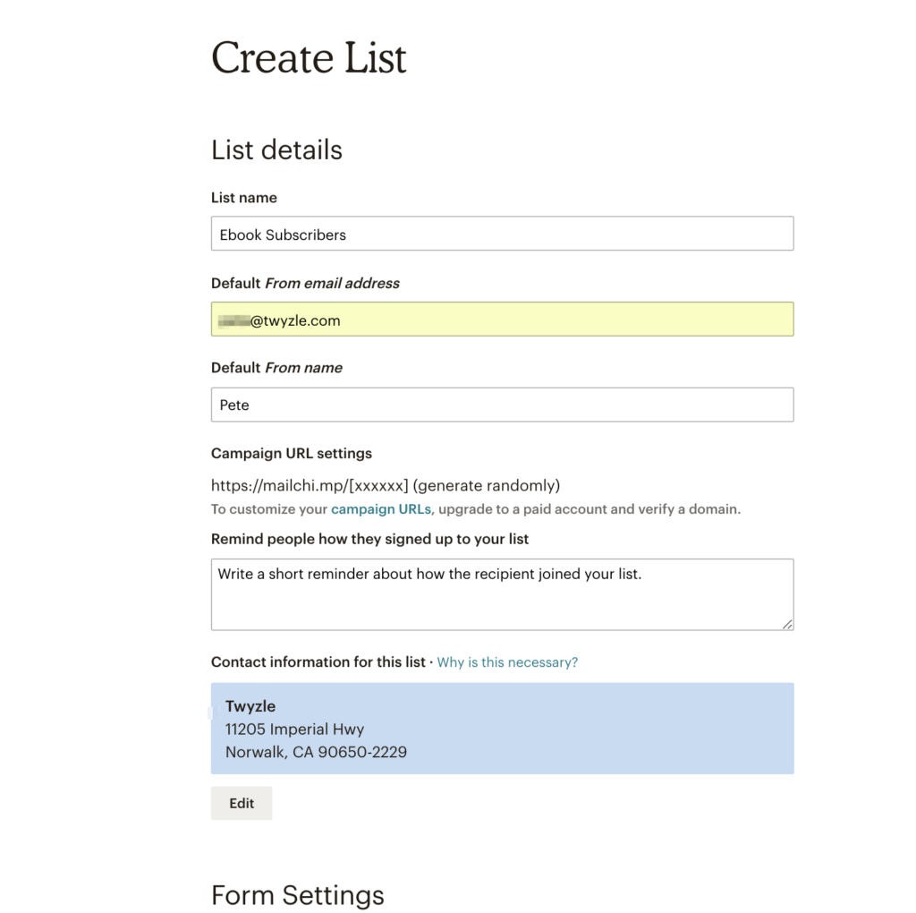 You’ll then be asked to enter some list details: